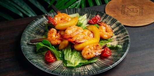 Креветки-гриль с персиком
