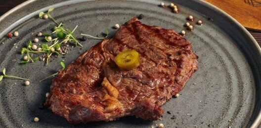 Корейка, покрытая сыром "Моцарелла" для сохранения максимальной сочности. Подаётся с перчиком "Халапеньо".
