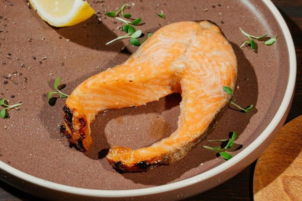 Сочный стейк форели, приправленный фирменными специями. Подается со свежей зеленью и долькой лимона для яркого акцента.