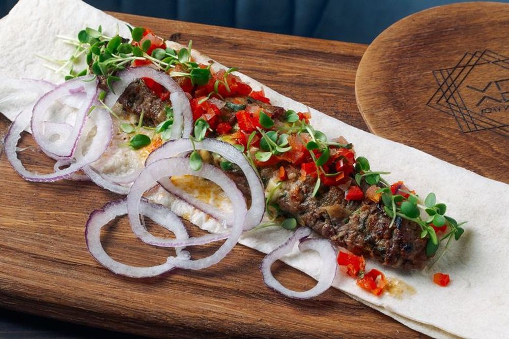 Кебаб из говядины с сыром и печеными томатами
