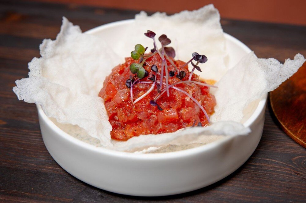 Нежный тар тар из тунца с добавлением соуса кимминт