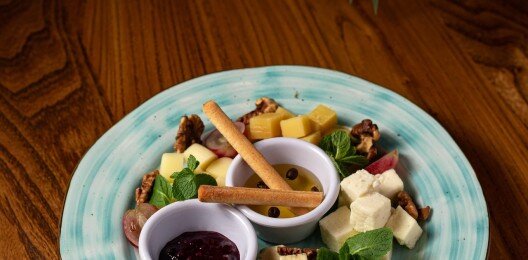 Сочное, ароматное мясное ассорти собственного приготовления - копченый ягненок и оленина, домашний бекон, ростбиф и копченая утиная грудка. Подается с дижонской горчицей, оливками и перчиком халапеньо.