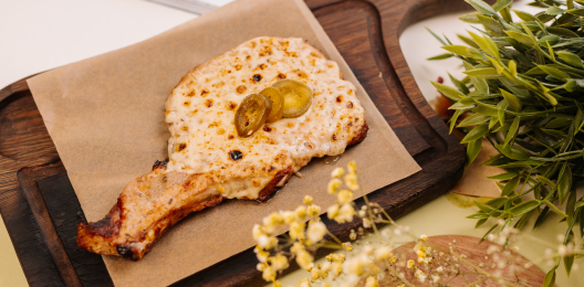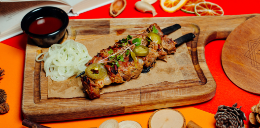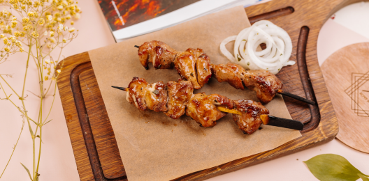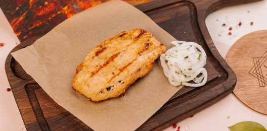Нежнейшее куриное филе бедра, снятое с кости, маринованное в специях и обжаренное на углях. Подается с красным луком.