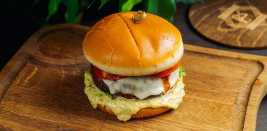 Бургер ХБ с котлетой из мраморной говядины в беконе
