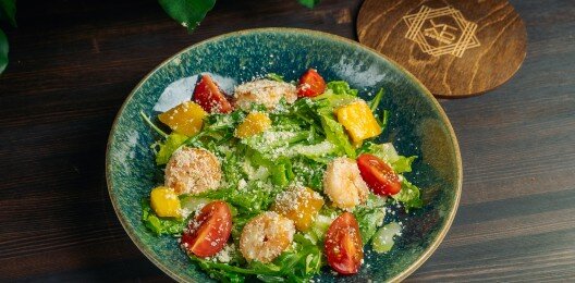 Салат с креветками и кусочками манго